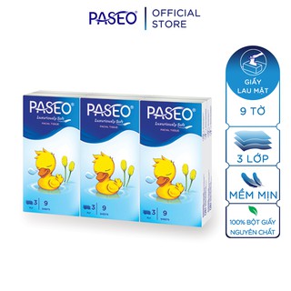 [Mã BMBAU50 giảm 50K đơn 150K] Khăn giấy rút bỏ túi Paseo nhỏ gọn, tiện lợi, dễ mang theo (9 tờ 3 lớp)/gói - (6 gói)/lốc