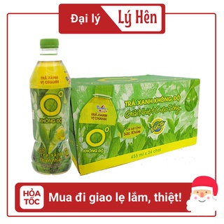 Thùng 24 Chai Trà Xanh Không Độ Vị Chanh Chai Nhựa PEP 455ml Date Luôn Mới