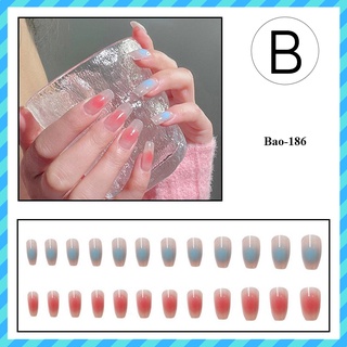 móng tay giả form vừa màu xanh,hồng hoạt tiết