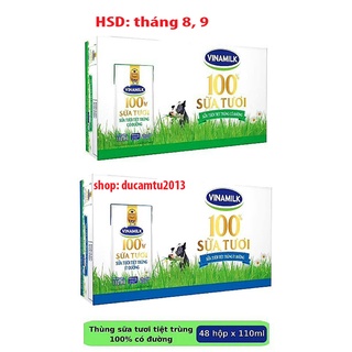 Thùng 48 hộp sữa tươi tiệt trùng vinamilk 110ml ít đường, có đường
