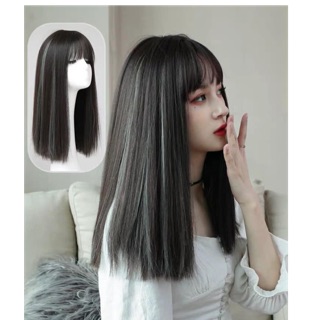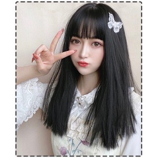 Tóc giả nữ 🥰FREESHIP🥰 Tóc giả nguyên đầu thẳng lỡ đen like xanh khói