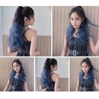 Tóc giả nữ ngoặm 🧐FREESHIP🧐 Tóc giả ngoặm xù omber xanh khói