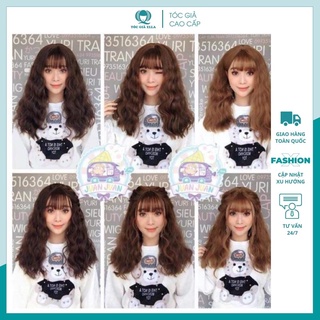 Tóc giả nữ giá rẻ 🤡FREESHIP🤡Giảm 5k khi nhập [TOCGIA5K]-Tóc giả nguyên đầu hai mái xù hất hồng khói