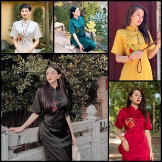 Mẫu Đồ Lam Lụa Satin Thêu Hoa Vòng Tròn Đủ Size