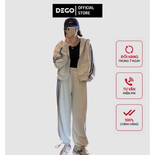 Bộ nỉ 2 sọc xanh nữ DEGO hàng cao cấp chất dày dặn