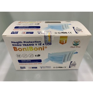 Khẩu trang y tế 4 lớp kháng khuẩn cao cấp ngăn bụi phòng dịch hộp 50 chiếc Boni Boni KT01