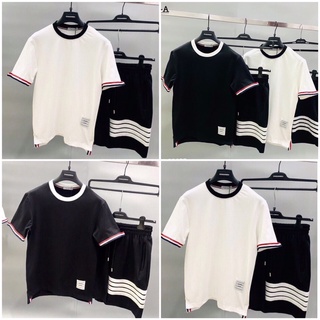 Áo PoLo Thome Nam Nữ Sọc viền kẻ tay, Áo form rộng tay ngắn