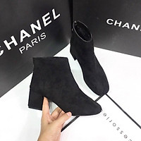 B09- Bốt da lộn gót trụ 5p khoá sau cực ấm( ảnh thật kem video quay tại shop)