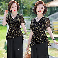 Bộ Đồ Trung Niên Áo Voan Tay Ngắn Cho Mẹ AB88 - Hàng Quảng Châu Cao Cấp
