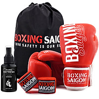 Combo Găng Tay Boxing Saigon + Băng Tay 4m5 (tặng túi rút) - Đỏ