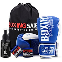 Combo Găng Tay Boxing Saigon + Băng Tay 4m5 (tặng túi rút) - Xanh dương