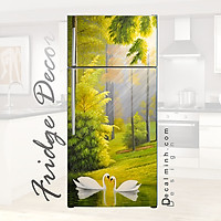 Decal dán tủ lạnh - Giấy dán tủ lạnh - Mẫu tranh sơn dầu thiên nga