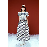 DOTTIE - Chân váy midi kẻ ô - Xanh đen - S0253