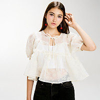 DOTTIE - Áo tay phồng phối bèo - Trắng kem - T1124