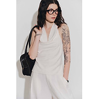 DOTTIE - Áo cổ đổ cột dây - Be nhạt - T1129