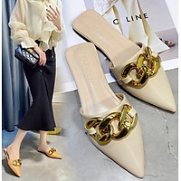 Giày sandan kim sa hở hậu đính hạt gót 3f