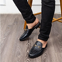 Sục nam giày bít mũi đai chữ h da Pu hàng xịn