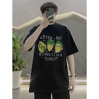 Áo thun tay lỡ áo cotton 2 chiều in hình hoạ tiết