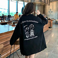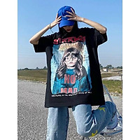 Áo thun cao cấp áo cotton tay lỡ đen cô bé màu và cô bé bông hoa