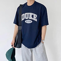 Áo thun tay lỡ màu xanh áo cotton 2 chiều dày dặn in chữ DUKE