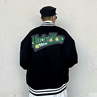 Bomber kaki thêu tay da 2 màu đỏ đen chữ H