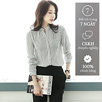 Áo Nữ Kẻ Sọc Thời Trang Áo Kiểu Áo Sơ Mi Nữ Tay Dài Cổ Chữ V Nữ Cao Cấp Hàn Quốc Sang Trọng Nữ Áo Sơ Mi Haint Boutique HB32