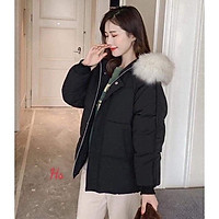 Áo Khoác Phao Dáng Suông Free Size Mũ Lông Tháo Rời
