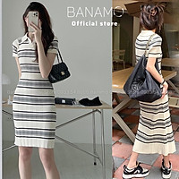 Váy chất len tăm nữ body cổ bẻ dáng dài co giãn tốt 545