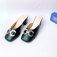 Dép sục cao gót vuông cm bít mũi vuông khóa đôi