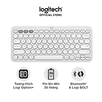 Bàn phím không dây Bluetooth Logitech K380 - Kết nối 3 thiết bị, giảm ồn, gọn nhẹ dễ mang đi, phù hợp Mac/ PC/ Laptop/ Điện thoại - Hàng chính hãng - Màu Trắng