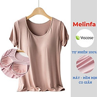Áo thun nữ ngắn tay đệm ngực nâng đỡ vải Viscose (gỗ tự nhiên) mềm mại thoáng mát mặc nhà mùa hè mã VAA0096