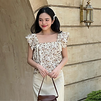 Áo kiểu nữ form ngắn tay phồng cổ chữ U họa tiết hoa Jessie Miều Est.2013