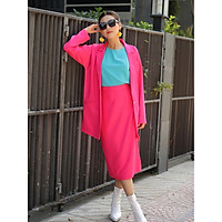 Set áo váy hồng cổ tròn NGADO, Set chân váy xòe, Set đồ công sở