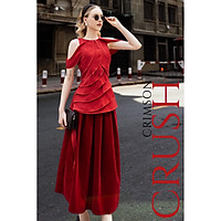 Đầm đỏ cổ cao vạt xéo NGADO