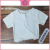 Áo croptop ôm nữ tay lỡ cổ cao cài khuy gợi cảm OZENKA , crt kiểu hàn quốc thun 100% cotton tự nhiên đen trắng dưới 55kg