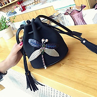 Túi Da Xách Tay Cao Cấp T12 Thêu Hoa - Đen