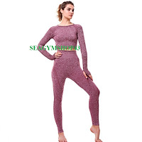 Áo Croptop Dài Tay Quần Dài Dệt Kim Tập Yoga Gym