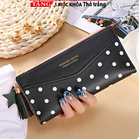 Ví nữ cầm tay dự tiệc chấm bi trắng CB85 Tặng móc khóa thỏ trắng