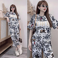 Đồ bộ thun cotton nữ họa tiết in 3D chữ D
