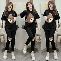 Đồ bộ thun đùi in gấu 3D phối màu bất đối xứng