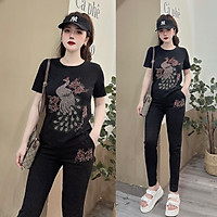 Đồ bộ thun cotton dài đính đá hình chim công siêu sang