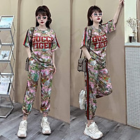 Đồ bộ thun cotton form rộng họa tiết hoa lá phối chữ