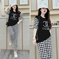 Đồ bộ thun đùi ngố họa tiết cây phối chữ cổ điển đen trắng
