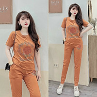 Đồ bộ thun cotton đính đá cườm hoa hồng sang trọng