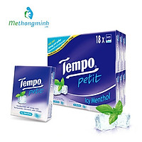 Lốc 18 gói Khăn giấy bỏ túi Tempo Petit Icy Menthol (hương bạc hà mát lạnh) - gói 7 tờ
