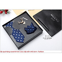 Cavat chú rể, MC, công sở nam Hàn Quốc cao cấp bản trung 7cm họa tiết xanh chấm nhỏ- Tặng kèm hộp Full box