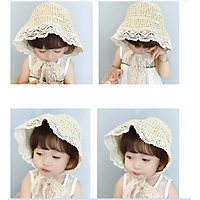 Mũ cói viền ren dây ren tiểu thư cho bé đến 5 tuổi