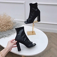 GIÀY BỐT CỔ LỬNG hở mũi gót vuông xỏ ngón 7P - Siêu sang