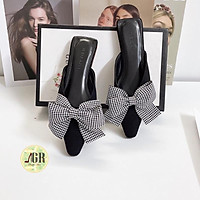 Dép sục mũi vuông nhọn nơ sọc caro siêu xinh ( loại 1)