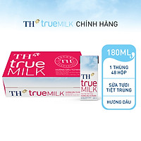 Thùng 48 hộp sữa tươi tiệt trùng hương dâu TH True Milk 180ml (180ml x 48)